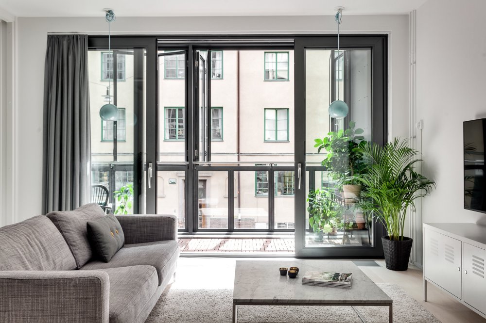 Но если вы все же не можете отказаться от идеи присоединить к гостиной или кухне лоджию, то есть допустимый альтернативный вариант. Можно сделать французское окно, которое представляет собой стеклянную конструкцию, которая помещается в пространство между теплым и холодным помещением. Это позволит сохранить тепловой контур жилья. При этом французское окно может быть либо распашной, либо раздвижной конструкции.