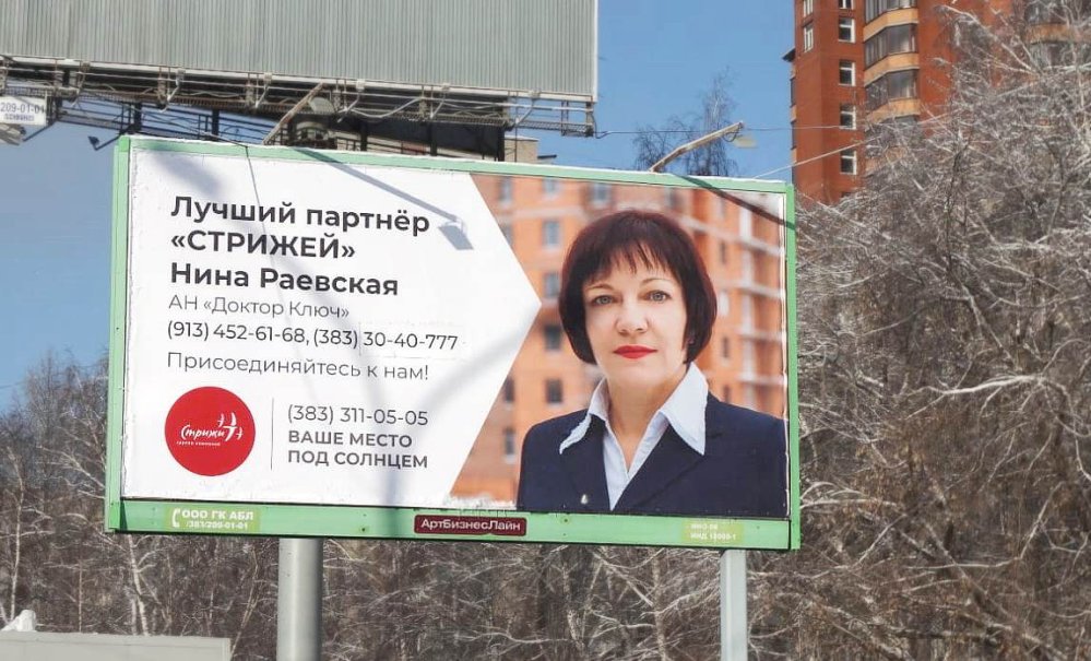 Каждый месяц по результатам продаж ГК «Стрижи» определяет лучших партнеров среди специалистов по недвижимости и размещает их фотографии на билбордах города. По итогам января Нина Раевская заняла заслуженное первое место. Она организовала максимальный объем продаж квартир в новом проекте ЖК «Булгаков», расположенном на Левом берегу Новосибирска. Мы гордимся победой Нины Раевской, которая сотрудничает с нашей компанией и является одной из эффективных и опытных риелторов!