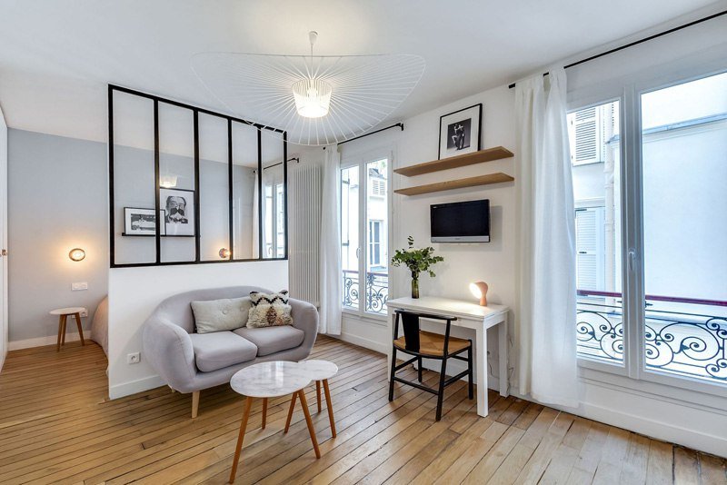 Сейчас также набирают популярность перегородки, выполненные из стекла. Они тоже не столь прочные, как, например, кирпич, но обладают одним важным плюсом — они сохраняют естественное освещение в обеих разделенных зонах. А чтобы создать больше уюта в вечернее время, можно добавить к таким стеклянным перегородкам шторы.